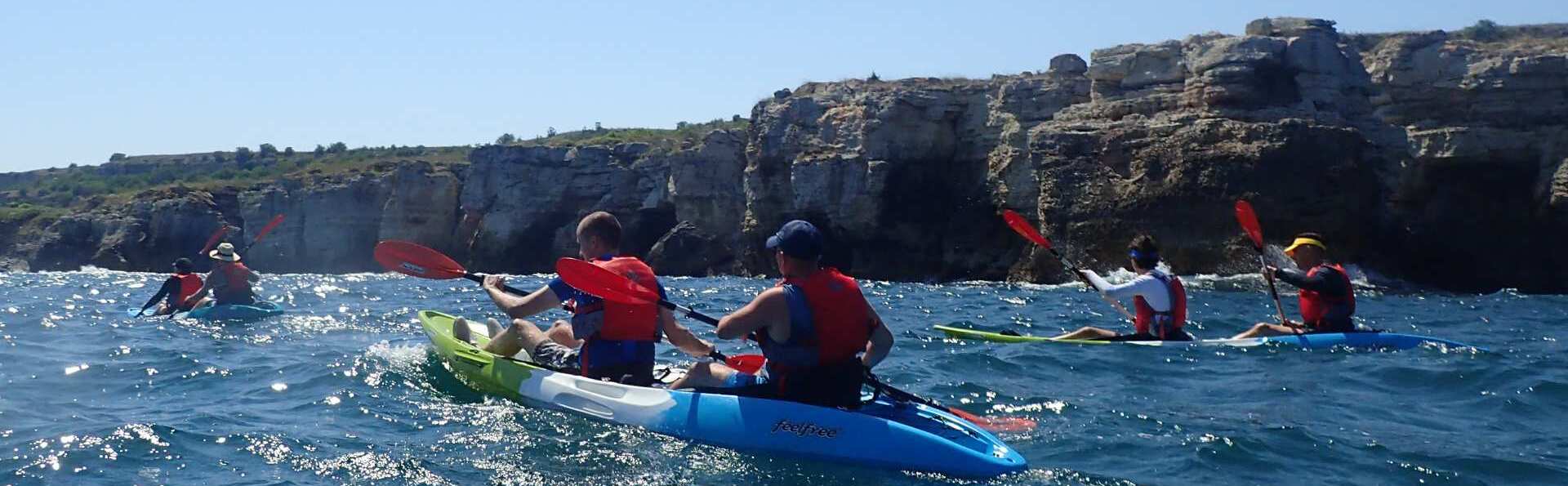 Ce include fiecare zi? Sâmbătă: atelier de rapel pe faleze cu aterizare în mare + caiac 7 km Tyulenovo–Shabla + snorkeling. Duminică: caiac 10 km Tyulenovo–Rusalka + vizitare sit arheologic Yailata + snorkeling.
