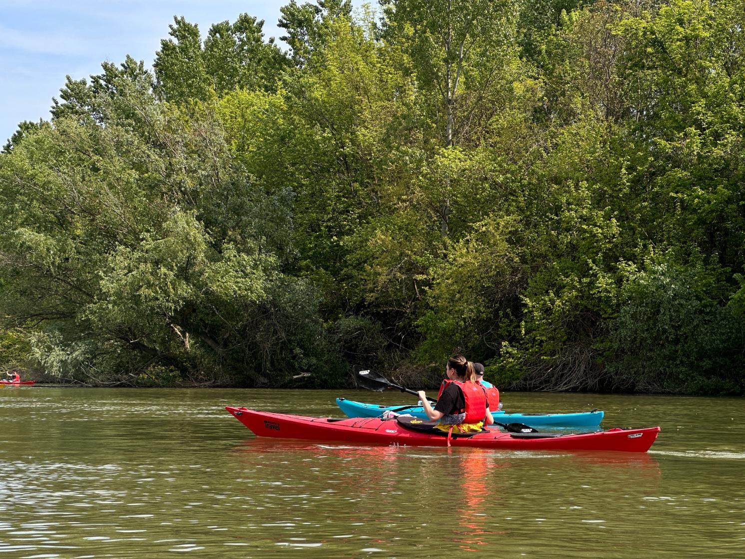 Cel mai lung traseu de caiac din programele Green Adventure. Vâslești pe Dunăre — nu pe un râu sau un lac — iar dimensiunea apei, curentul blând și orizontul deschis îți oferă o senzație complet diferită de orice alt traseu de caiac.