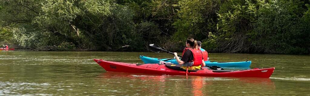 Briefing complet la start — poziționare în caiac, manevrarea padelei, tehnici de navigare pe fluviu și reguli de siguranță.